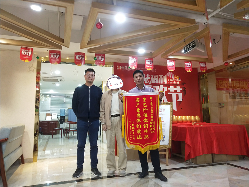 2018年11月11日工職院老師送來(lái)錦旗,設(shè)計(jì)師李書(shū)杰、項(xiàng)目經(jīng)理謝為學(xué)接受錦旗,錦旗內(nèi)容:客戶(hù)意愿你們實(shí)現(xiàn),星藝價(jià)值你們體現(xiàn)