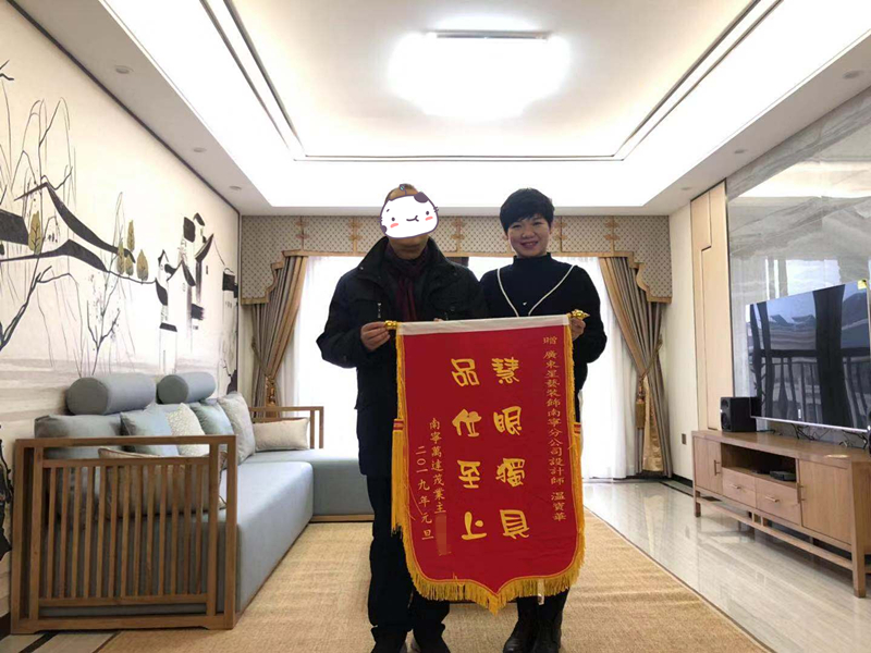 2019年元旦,星藝裝飾設(shè)計(jì)師溫寶華在萬(wàn)達(dá)茂業(yè)主賀先生家中接受表彰錦旗,公司已有多個(gè)設(shè)計(jì)師受到業(yè)主的肯定和褒獎(jiǎng)。錦旗內(nèi)容:品味至上 慧眼獨(dú)具,這不是星藝裝飾的第一面錦旗,但也肯定不是最后一面的錦旗,紅艷艷的錦旗是星藝裝飾始終堅(jiān)持顧客至上的服務(wù)理念的最好的回報(bào),也是公司不斷發(fā)展、不斷裝的強(qiáng)勁動(dòng)力,我們將繼續(xù)堅(jiān)持“把裝修交給我們,您放心上班去”的宗旨,全新全新為每一位客戶服務(wù),打造出更多的“放心工程”、“品質(zhì)工程”,來(lái)回報(bào)我們的客戶。