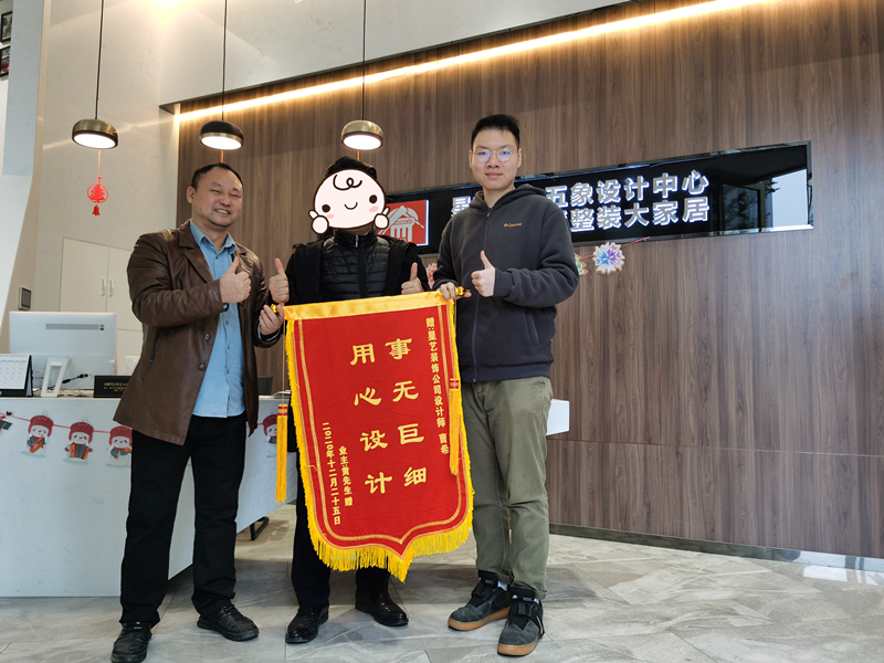 2020年十二月二十五日,圣誕節(jié)當(dāng)日,業(yè)主黃先生將大紅錦旗送到星藝裝飾五象設(shè)計(jì)中心,以感謝星藝裝飾設(shè)計(jì)師曹希用心設(shè)計(jì) 事無(wú)巨細(xì) ,這是對(duì)我們工作的極大認(rèn)可和肯定。在今后的工作中,我們將再接再厲,堅(jiān)持做客戶口碑,打造出更多的“精品工程”、“放心工程”,來(lái)回報(bào)我們的客戶。