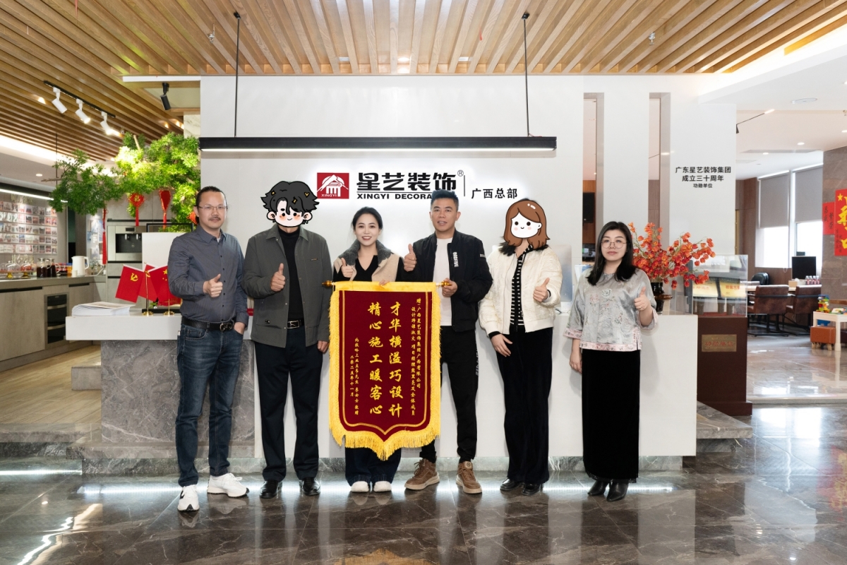 2025年12月初,南寧星藝裝飾廣西總部店迎來溫馨一幕:北投領(lǐng)上的業(yè)主專程到訪,將一面寫有“精心施工暖客心,才華橫溢巧設(shè)計(jì)”的錦旗送至公司,以此表達(dá)對(duì)項(xiàng)目團(tuán)隊(duì)專業(yè)服務(wù)與匠心品質(zhì)的高度認(rèn)可。