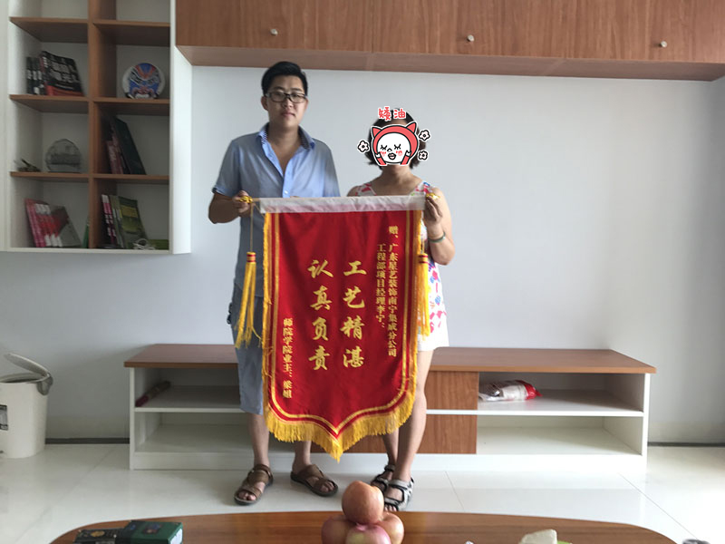 2017年9月2日,師范學院業(yè)主梁姐送來錦旗,贊揚廣東星藝裝飾南寧集成公司工程部項目經(jīng)理李寧認真負責,工藝精湛。
