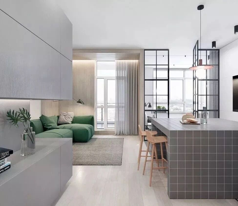 如果空間過小,就不用刻意用吊頂區(qū)分開客餐廳,這樣會令原本狹小的空間更顯局促??梢钥紤]把客餐廳看成一個整體來設(shè)計吊頂,在視覺上能起到放大空間的作用。