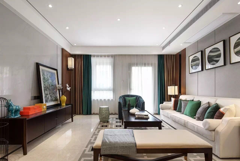 如果不裝吊頂,很多業(yè)主會覺得天花板光禿禿的不夠精致??梢岳檬嗑€、吊燈、射燈以及墻面的造型相配合,都很容易營造出質(zhì)感氛圍。