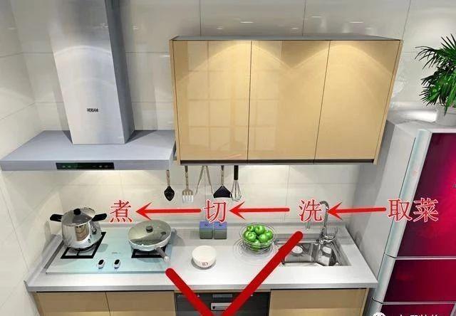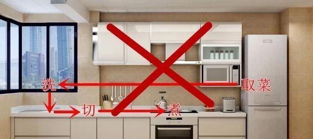 其實(shí)上圖的設(shè)計(jì)師錯(cuò)誤的,將其洗、切、煮動(dòng)線安排混亂,主婦下廚根本就非常的不順暢