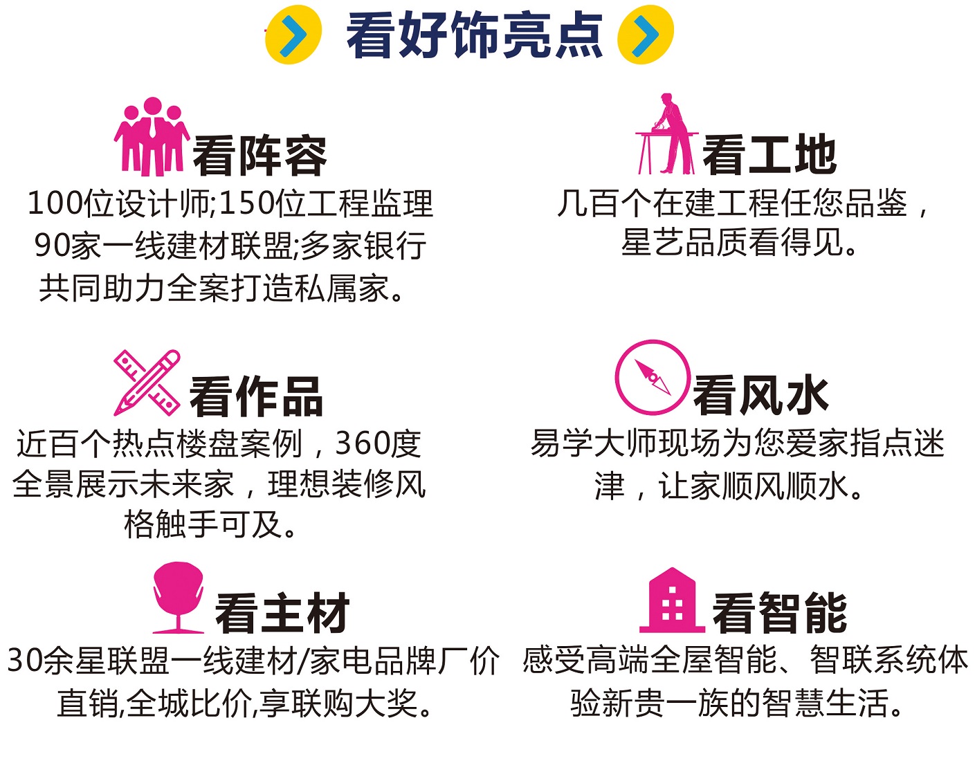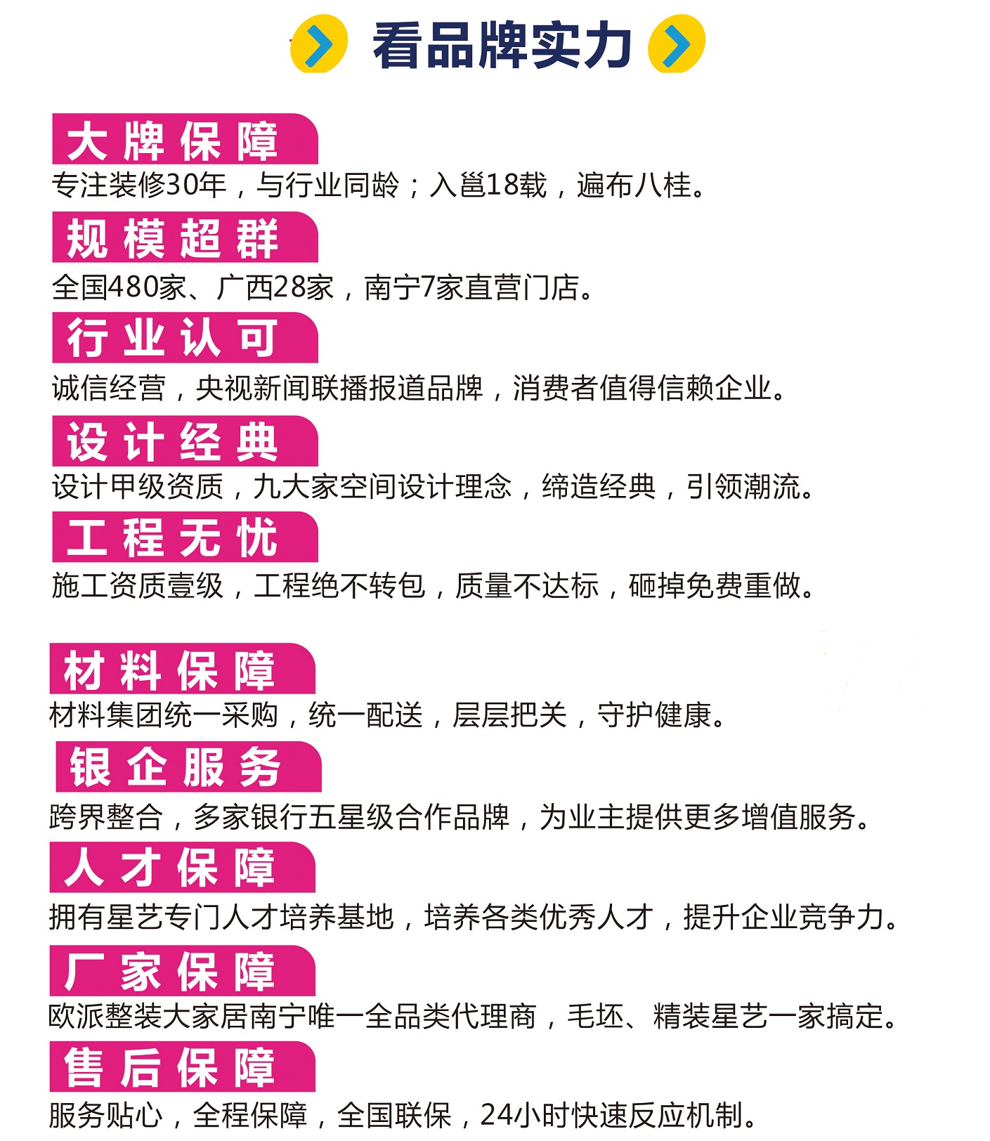 星藝人秉承做良心工程,本著對客戶負責,對自己負責的態(tài)度,工程決不外包,承諾工程質量有問題,砸掉免費重做!“好飾連城”好飾好屋、好事連連、幸福連連,好禮大放送,