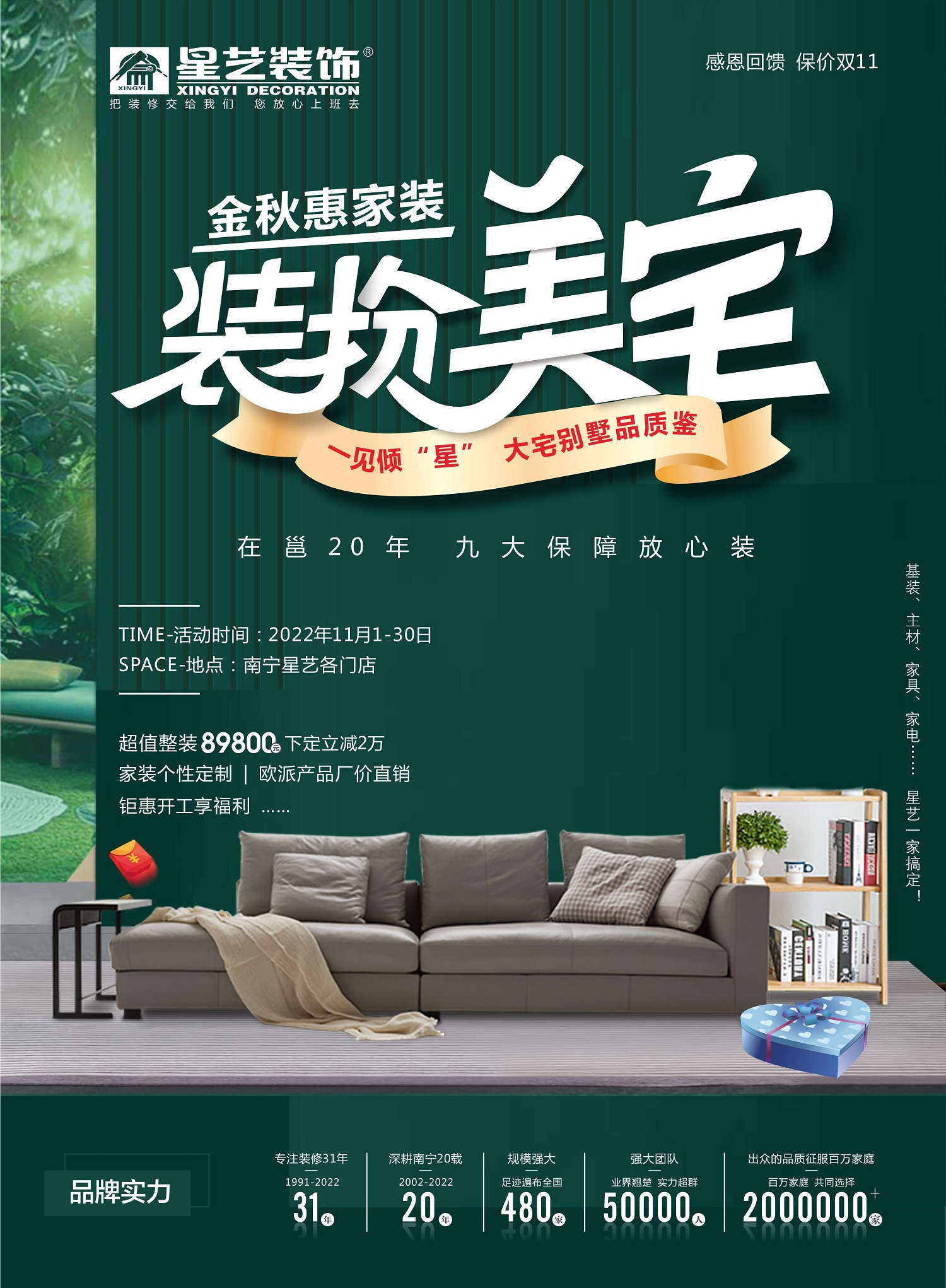 星藝裝飾金秋惠家裝“裝扮美宅”七店聯(lián)動(dòng),巔峰讓利!