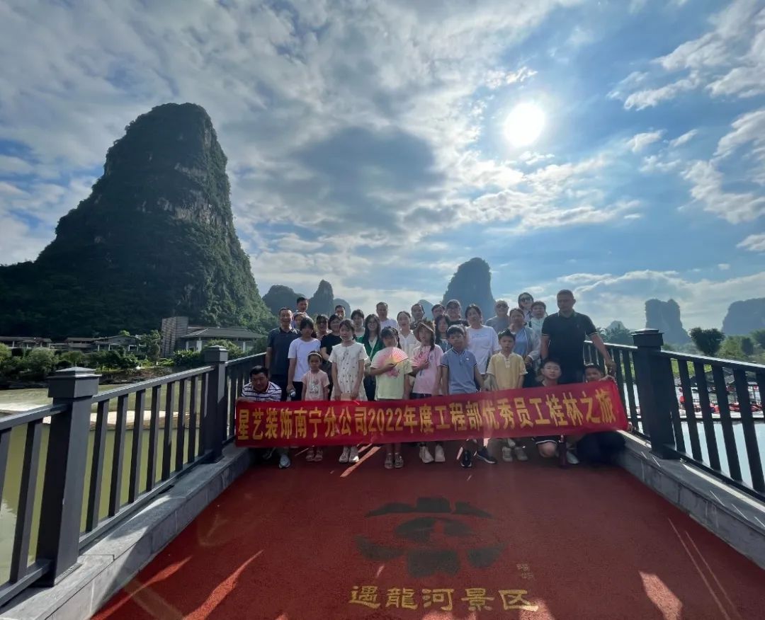 7月6日—10日,在公司的組織下,南寧7家直營門店員工和工程部的家人們開展了星藝南寧一年一度的團隊旅游拓展活動,分別前往北海潿洲島、桂林等地進行休閑游玩,通過勞逸結(jié)合,放松星藝家人們的身心,提高團隊凝聚力,為客戶提供更高品質(zhì)的服務(wù)打下良好基礎(chǔ)。