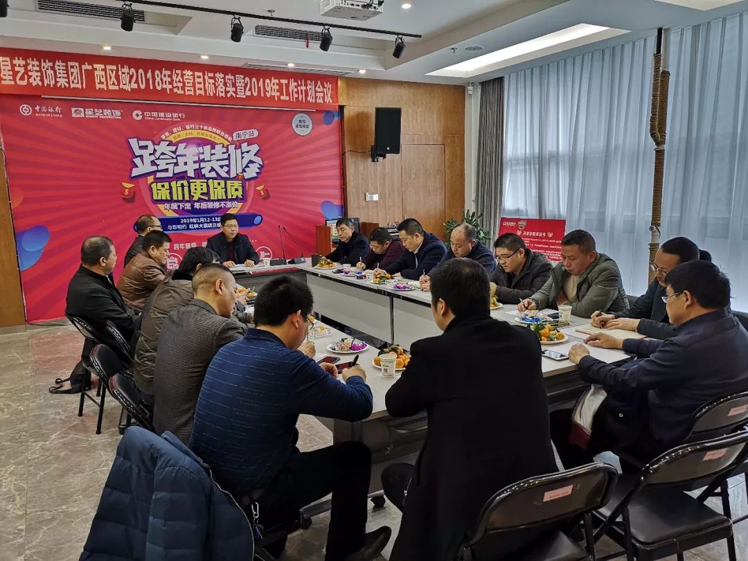 2018年12月17日,在星藝裝飾廣西總部迎來(lái)了一次極具重要意義的會(huì)議——星藝裝飾廣西區(qū)域2018年經(jīng)營(yíng)目標(biāo)落實(shí)暨2019年工作計(jì)劃會(huì)議成功召開(kāi);集團(tuán)領(lǐng)導(dǎo)周曉霖、大區(qū)總監(jiān)徐橘、區(qū)域負(fù)責(zé)人凌峰、劉英華、宋立宏、張鄭承,以及各分公司經(jīng)理參加了本次會(huì)議。會(huì)議由集團(tuán)領(lǐng)導(dǎo)周曉霖主持。