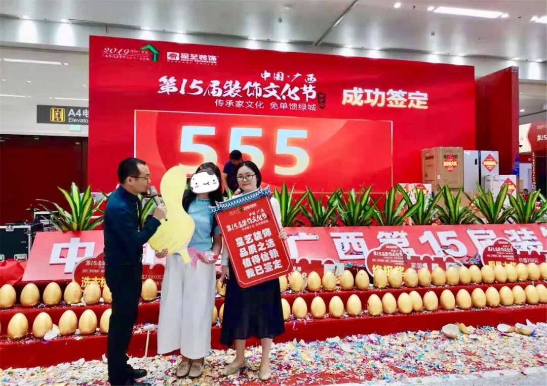 6月16日,隨著“15萬免單大獎”的塵埃落定,星藝裝飾第十五屆裝飾文化節(jié)(南寧站)于會展中心圓滿落下帷幕,在廣大客戶朋友、中行、農(nóng)行、建行以及五十余家材料商家的鼎力支持下,星藝南寧在本次活動中成功獲得625位客戶的選擇,再次刷新了2018年第十四屆裝飾文化節(jié)的記錄,成績斐然,收獲滿滿,又創(chuàng)下喜人的奇跡。