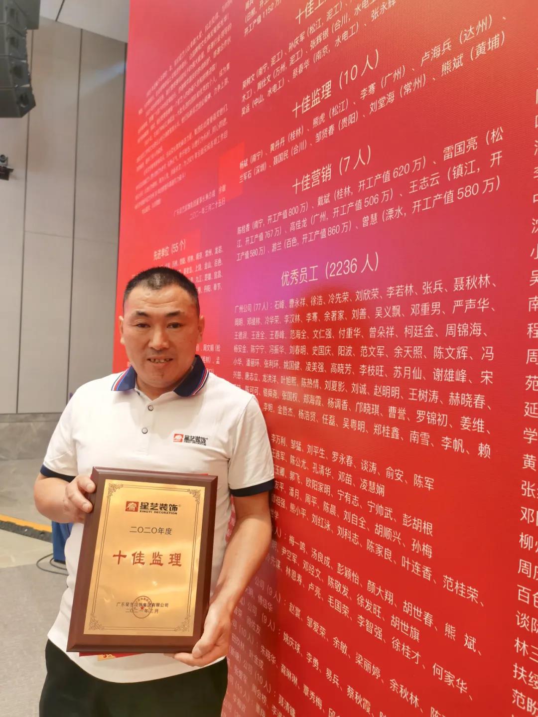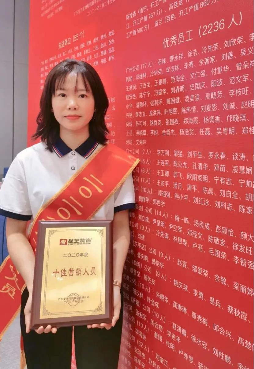 在本次大會(huì)上,星藝南寧分公司榮獲集團(tuán)總部2020年度“先進(jìn)單位”榮譽(yù)!同時(shí),還有星藝南寧區(qū)域總經(jīng)理周平生榮獲"優(yōu)秀經(jīng)理“,南寧區(qū)域總監(jiān)李明、富安居設(shè)計(jì)中心總監(jiān)張至榮獲“優(yōu)秀總監(jiān)”,網(wǎng)銷部陳桂香榮獲“十佳營銷員”,廣西總部設(shè)計(jì)師周兵榮獲“千萬設(shè)計(jì)師”,工程部監(jiān)理?xiàng)畋蟆笆驯O(jiān)理”,工程施工員莫樹文榮獲“十佳工人",75位南寧星藝員工榮獲“集團(tuán)年度優(yōu)秀員工”。備受矚目,“星”光閃耀!