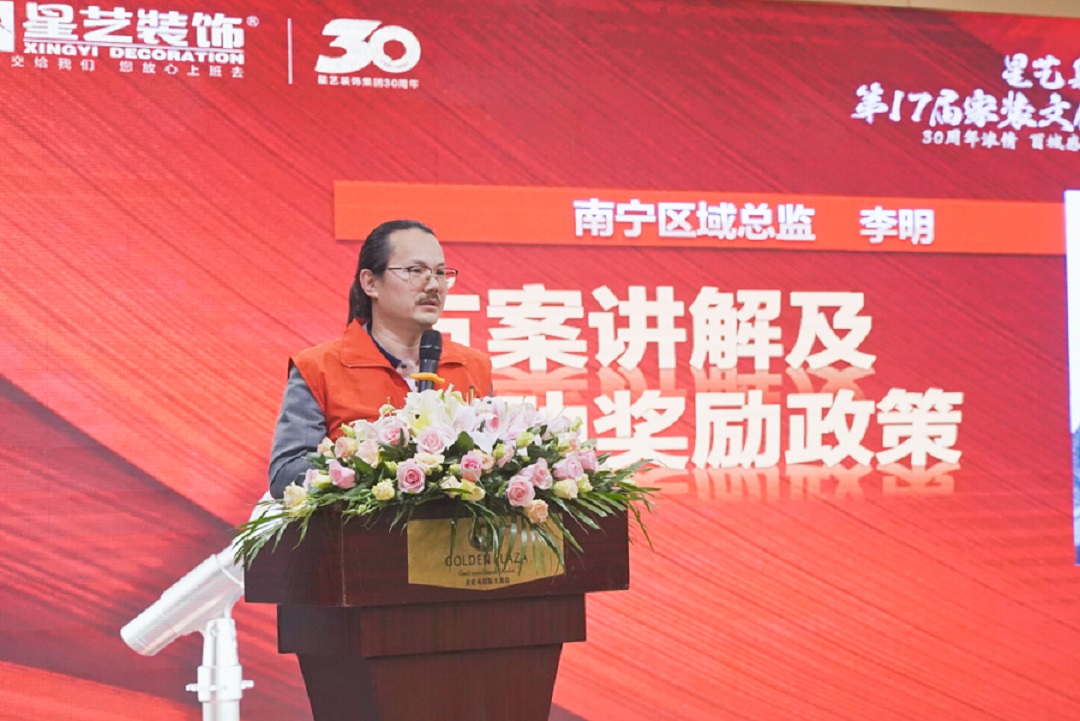 緊接著,星藝裝飾集團決策委成員、廣西區(qū)域總監(jiān)徐橘作大會總結(jié),徐總表示,今天舉辦培訓會的目的是為了讓大家收獲,學習講究方法,培訓會上的兩位老師帶來了很多經(jīng)驗分享,臺下也有很多員工勤作記錄,只有不斷學習與時俱進,才能緊跟市場的步伐,更好地完成目標。星藝裝飾家裝文化節(jié)舉辦至今已是第17屆,自己算是見證星藝南寧穩(wěn)健發(fā)展壯大的成員之一, 17年時間,南寧星藝不忘初心,回歸本源,堅持“把裝修交給我們,您放心上班去”的服務理念,讓客戶滿意讓客戶舒適,堅持以最大力度的優(yōu)惠回饋客戶,今年也要延續(xù)下去,在面對新的挑戰(zhàn),創(chuàng)造出更好的明天。