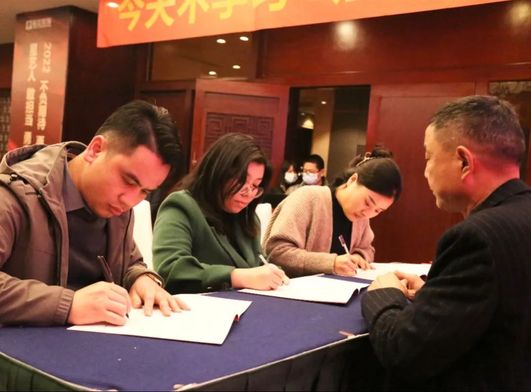 在啟動(dòng)前,由星藝裝飾南寧區(qū)域設(shè)計(jì)總監(jiān)李明上臺(tái)回顧分析2021年星藝南寧所取得的成績,在同比前年數(shù)據(jù)、上游市場的變化,李工表示“星藝南寧業(yè)績能保持穩(wěn)定增長的局面實(shí)屬不易”,并強(qiáng)調(diào)“不止團(tuán)隊(duì)管理者要?jiǎng)?chuàng)新,部門也必須創(chuàng)新”,隨后與各個(gè)部門負(fù)責(zé)人簽訂年度目標(biāo)責(zé)任書、開年活動(dòng)任務(wù)軍令狀。