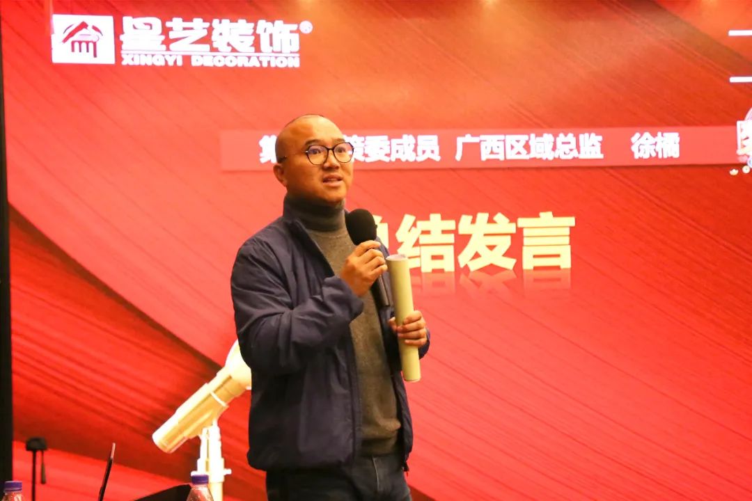 最后,集團(tuán)決策委成員、廣西區(qū)域設(shè)計(jì)總監(jiān)徐橘做會(huì)議總結(jié),徐總先是以南寧裝修市場形勢做了簡要的分享,并結(jié)合自己去外地市場考察,見到一些新的東西,分享到“因?yàn)槭袌鲈谧兓袠I(yè)在變化,不管是工程部也好,營銷部、設(shè)計(jì)部也好,相互之間一定要懂得總結(jié)和復(fù)盤。”通過慢慢地去做一些市場的復(fù)盤,去解決細(xì)部節(jié)點(diǎn)的問題,保持活躍性,不斷調(diào)整自己的模式,從而打造出企業(yè)的共同目標(biāo)。