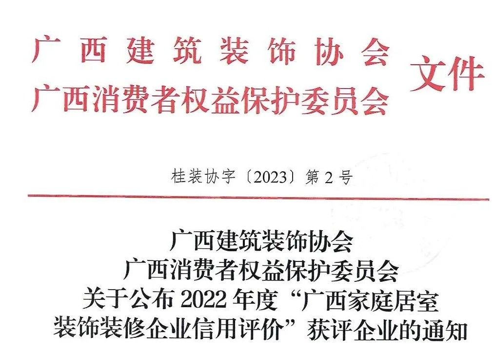 附件:2022年度“廣西家庭居室裝飾裝修企業(yè)信用評(píng)價(jià)”獲評(píng)企業(yè)名單