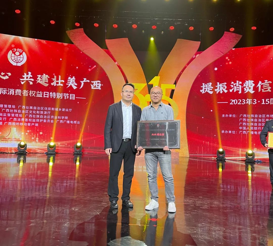 3月14日,在廣西壯族自治區(qū)市場(chǎng)監(jiān)督管理局、廣西壯族自治區(qū)住房和城鄉(xiāng)建設(shè)廳、廣西壯族自治區(qū)商務(wù)廳等相關(guān)部門(mén)聯(lián)合主辦,廣西廣播電視臺(tái)新聞?lì)l道、廣西視聽(tīng)移動(dòng)客戶(hù)端承辦的“提振消費(fèi)信心 共建壯美廣西2023年3.15國(guó)際消費(fèi)者權(quán)益日特別節(jié)目上正式為星藝廣西頒發(fā)裝企信用評(píng)價(jià)AAA級(jí)企業(yè)榮譽(yù)牌匾,權(quán)威認(rèn)證,行業(yè)認(rèn)可,品牌魅力再次彰顯。