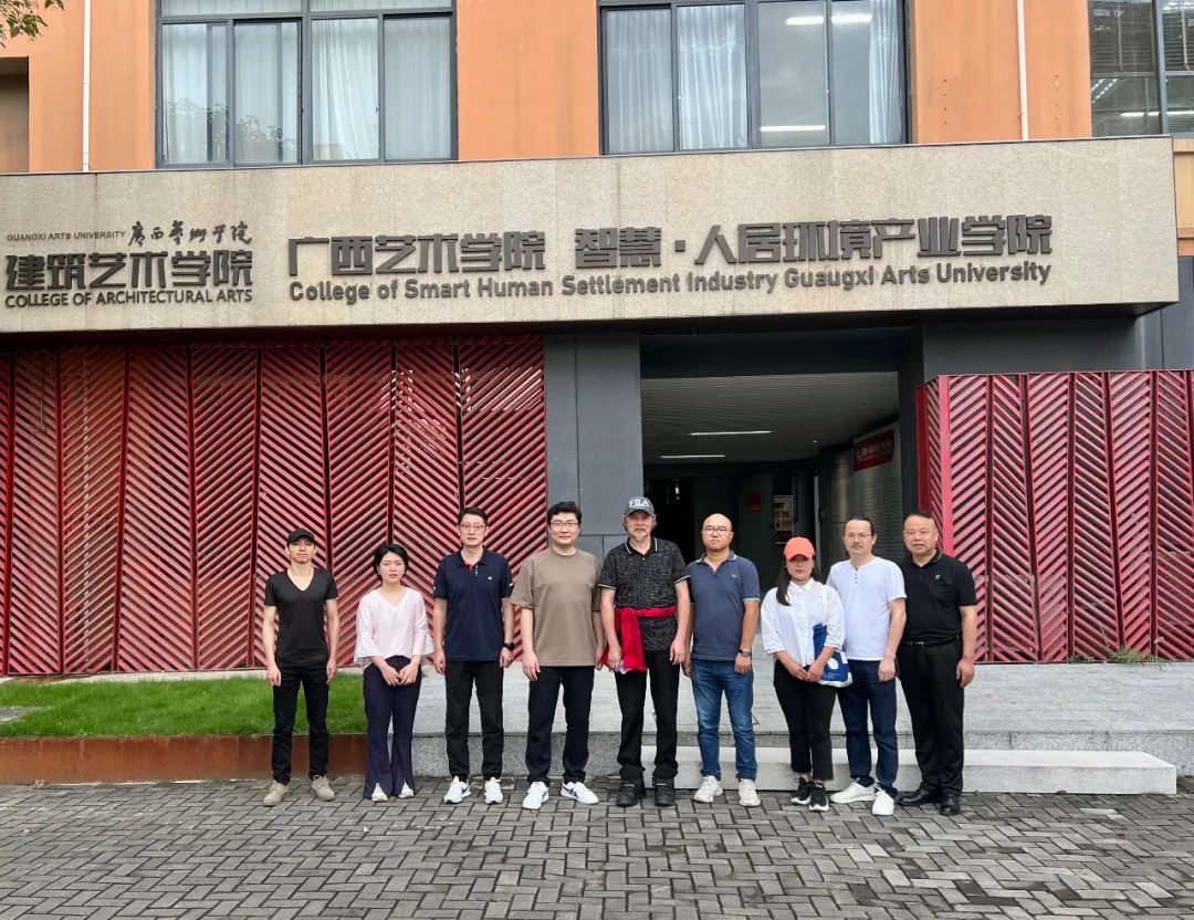 隨著授課結束,在院環(huán)境設計系主任邊繼琛教授的帶領下,余工一行人參觀了建筑藝術學院,不管是其建筑設計成果展示還是院系內的實操基地,都能讓參觀的一行人感受到廣藝建筑藝術院滿滿的藝術設計氛圍。
