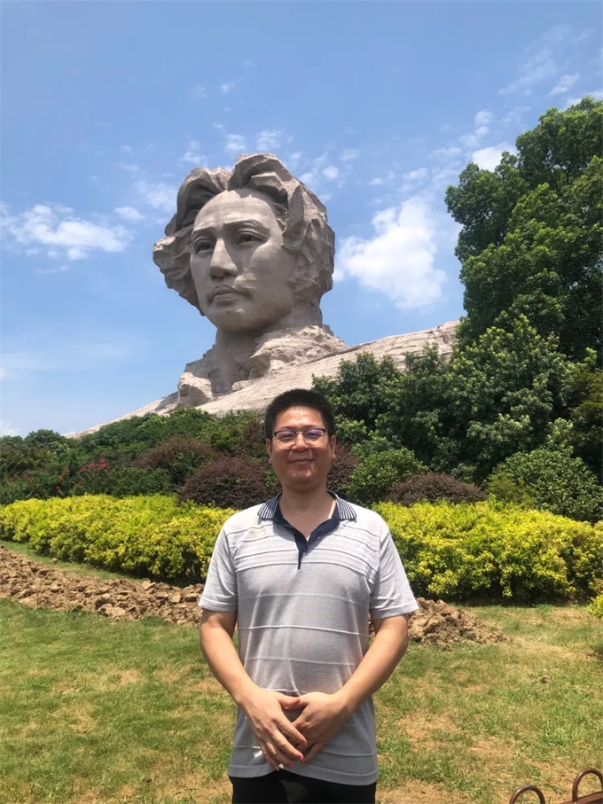 與偉人塑像合影