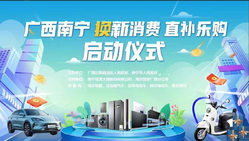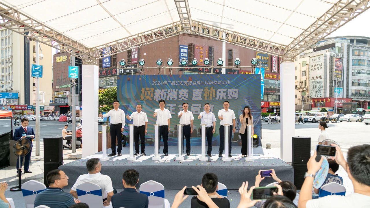 8月31日上午10時(shí),由廣西自治區(qū)發(fā)展改革委、自治區(qū)商務(wù)廳、自治區(qū)交通運(yùn)輸廳、自治區(qū)農(nóng)業(yè)農(nóng)村廳聯(lián)合主辦;南寧市發(fā)展改革委承辦;海爾智家廣西分公司、南寧百貨大樓股份有限公司聯(lián)合協(xié)辦;2024年廣西加力支持消費(fèi)品以舊換新工作啟動(dòng)儀式在南寧百貨大樓小廣場(chǎng)(朝陽(yáng)路門(mén)店)隆重舉行。