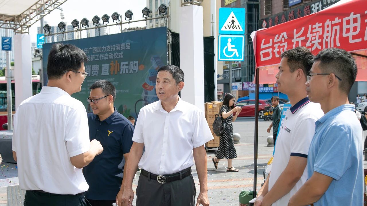 自治區(qū)發(fā)展改革委二級(jí)巡視員李新勤、自治區(qū)發(fā)展改革委環(huán)資處處長(zhǎng)陳彥武、自治區(qū)商務(wù)廳市場(chǎng)運(yùn)行和消費(fèi)促進(jìn)處副處長(zhǎng)顏國(guó)彪、自治區(qū)交通運(yùn)輸廳道路運(yùn)輸發(fā)展中心副主任朱華忠、自治區(qū)農(nóng)業(yè)農(nóng)村廳農(nóng)機(jī)中心副處長(zhǎng)陳雷明、南寧市發(fā)展改革委副主任賀大州、海爾智家廣西分公司總經(jīng)理張迪、南寧百貨大樓股份有限公司總經(jīng)理覃春明參與活動(dòng)并且發(fā)布活動(dòng)致辭。