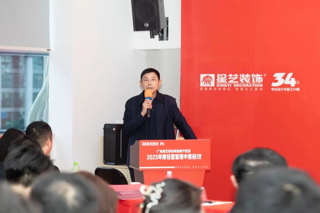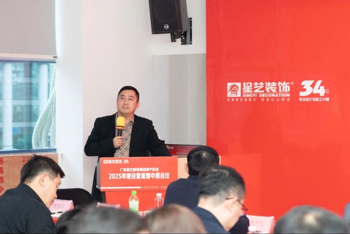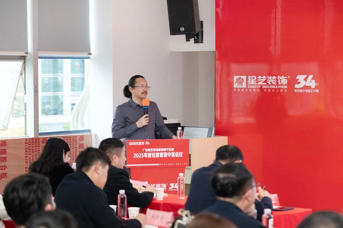 會(huì)議開(kāi)始,星藝南寧區(qū)域設(shè)計(jì)總監(jiān)李明先是總結(jié)2024年星藝南寧各大部門(mén)所取得的成績(jī),并提出”優(yōu)化提效“、”精細(xì)化板塊“”客戶(hù)管理系統(tǒng)“等方面進(jìn)行致辭;星藝南寧區(qū)域副總經(jīng)理胡四民就”材料管理“、”人才培養(yǎng)“以及”大家居“等方面進(jìn)行解析。
