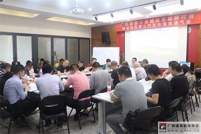 基于此背景下,5月14日下午,由廣西建筑裝飾協(xié)會(huì)牽頭,組織會(huì)員企業(yè)代表在星藝裝飾南寧分公司會(huì)議室召開——廣西家庭居室裝飾裝修行業(yè)誠信發(fā)展研討會(huì)暨媒體通氣會(huì)。廣西電視臺(tái)新聞?lì)l道、南寧電視臺(tái)、新聞910廣播電臺(tái)、南國早報(bào)、南寧晚報(bào)主流媒體受邀出席會(huì)議。