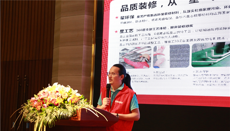 緊接著,星藝南寧區(qū)域總監(jiān)李明(以下簡稱李工)上臺(tái)講解“好飾連城5(南寧站)”活動(dòng)精要;他以簡短的八月份總結(jié)做為致辭鋪墊,詳細(xì)的引出“好飾連城5(南寧站)”活動(dòng)的優(yōu)惠亮點(diǎn)和微小改變,并借此寓意無論是業(yè)績還是星藝家人,在本次活動(dòng)中亦能有個(gè)嶄新的突破。
